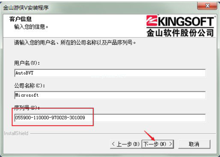 3、依提示進(jìn)行下一步,輸入安裝序列號(hào):055900-110000-970028-301009。