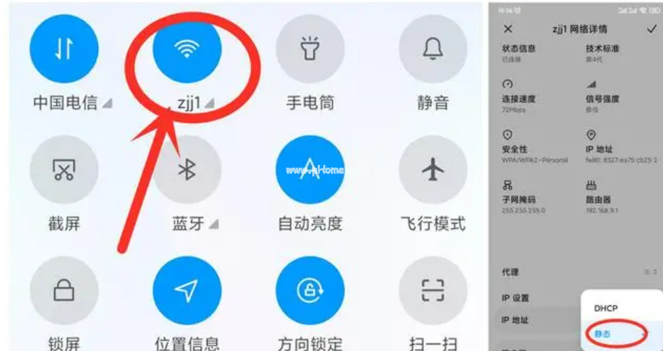 2、在【靜態(tài)】頁面中將IP地址按下圖設置即可!通過更改IP地址也可以解決連上網(wǎng)卻無法打開網(wǎng)頁的情況。