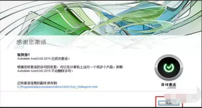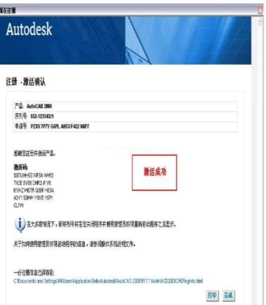 6、最終激活成功,點擊完成。在此進入軟件后AutoCAD2008就可以運行了。
