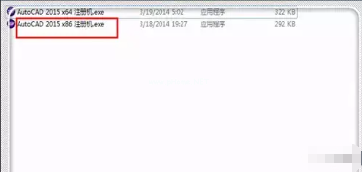 5、在注冊機中,點擊“AutoCAD 2015 x86 注冊機.exe”,打開注冊機。這里最好是右鍵點擊,然后選擇“以管理員身份運行”。