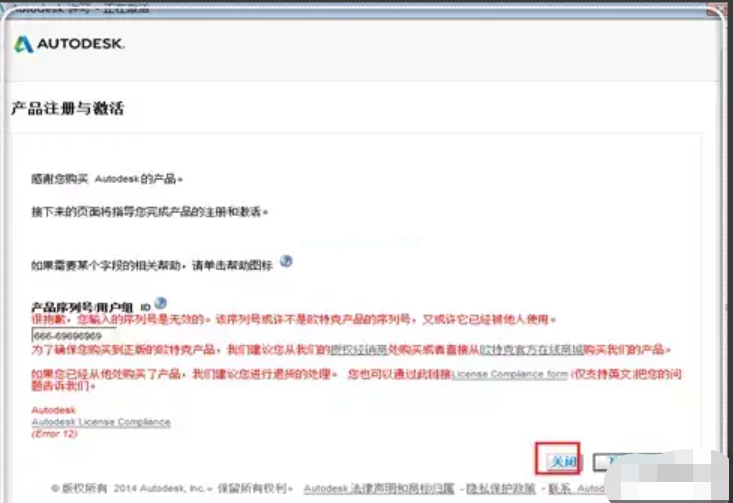 1、打開CAD2015版本,其他版本的解決方式一樣。點擊激活,進入到這里,會出現(xiàn)提示,安裝序列號無效,這里可以簡單解決的。點擊“關(guān)閉”。