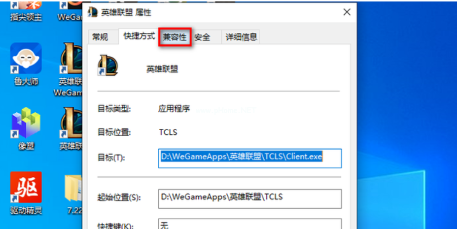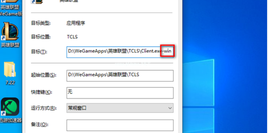 4、在【目標(biāo)】后面加上【-win】,再打開后也是窗口模式。