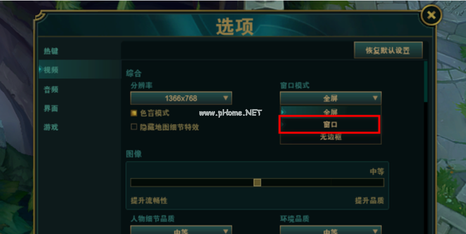 1、絕大多數(shù)電腦游戲在設(shè)計(jì)時(shí)都會(huì)設(shè)計(jì)設(shè)置窗口模式的功能,這里用英雄聯(lián)盟舉例。