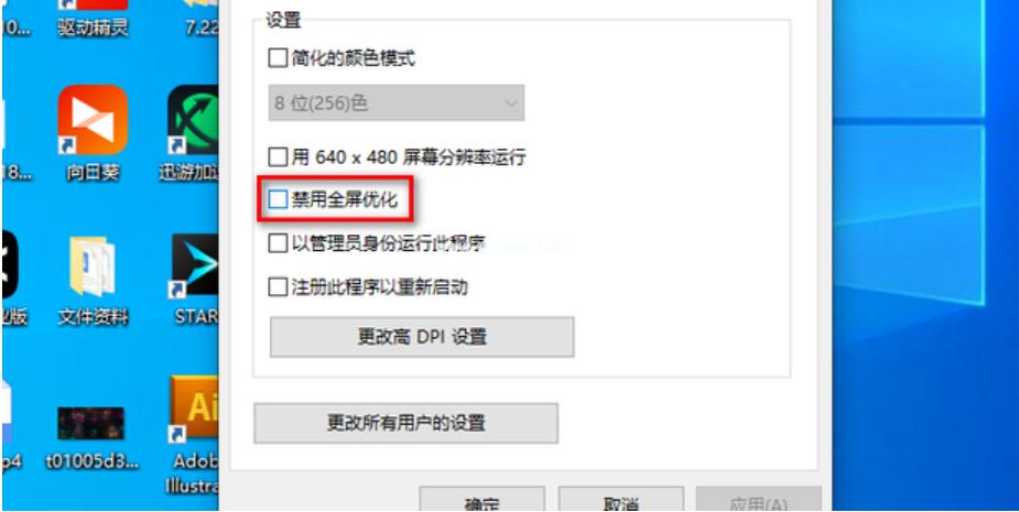 2、點(diǎn)擊【禁用全屏優(yōu)化】。