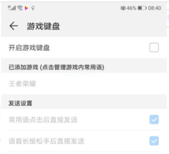 5、在游戲鍵盤后面的方框打勾就可以開啟,開啟設(shè)置成功之后就可以正常使用手機(jī)鍵盤,完全不影響使用。