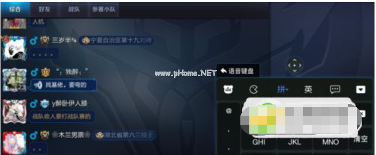 4、這時(shí)進(jìn)入任意一款手機(jī)游戲后,聊天時(shí)彈出的輸入法就不再是占用大半個(gè)屏幕,而是在游戲界面右下角的位置彈出一個(gè)小的半透明游戲鍵盤。