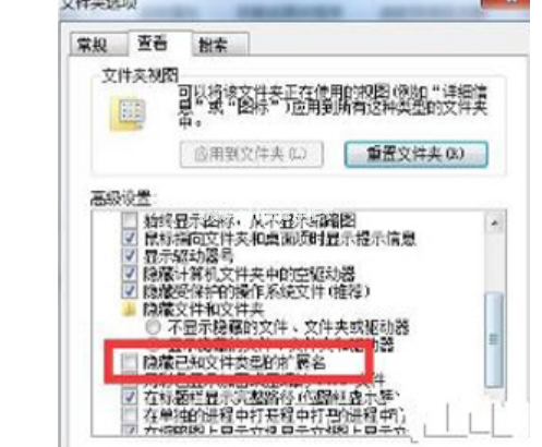 點(diǎn)擊取消【隱藏已知文件擴(kuò)展名】的勾選。