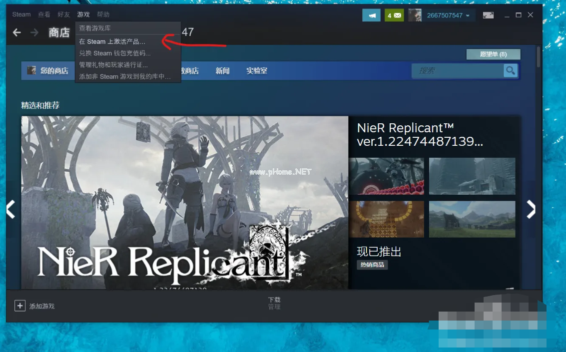 4、以上就是在steam上用激活碼兌換游戲的方法了。