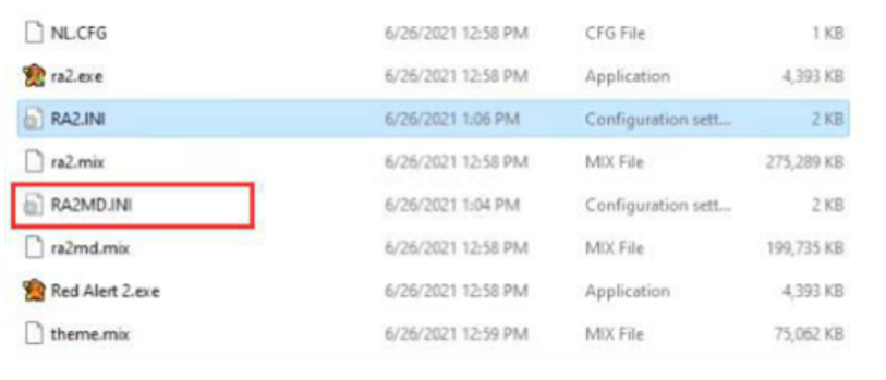 4、接著我們來到游戲的安裝目錄,雙擊打開其中的“RA2MD.INI”配置文件。
