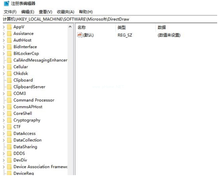 2、找到:HKEY_LOCAL_MACHINE\SOFTWARE\Microsoft\DirectDraw 中的“EmulationOnly”。