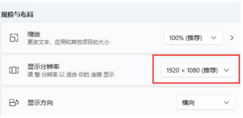3、接著在規(guī)模與布局中可以查看到我們的“顯示分辨率”,記住他。