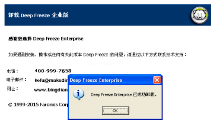 5、卸載完成后,出現(xiàn)如下對(duì)話框“Deep Freeze Entertainment 已成功卸載”,點(diǎn)擊完成即可。