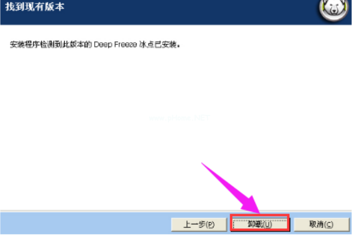 2、如果是系統(tǒng)已經(jīng)安裝了冰點(diǎn)還原企業(yè)版,那么它會(huì)自動(dòng)檢測(cè)出冰點(diǎn)企業(yè)版已經(jīng)安裝,下面會(huì)有卸載圖標(biāo),然后點(diǎn)擊卸載。