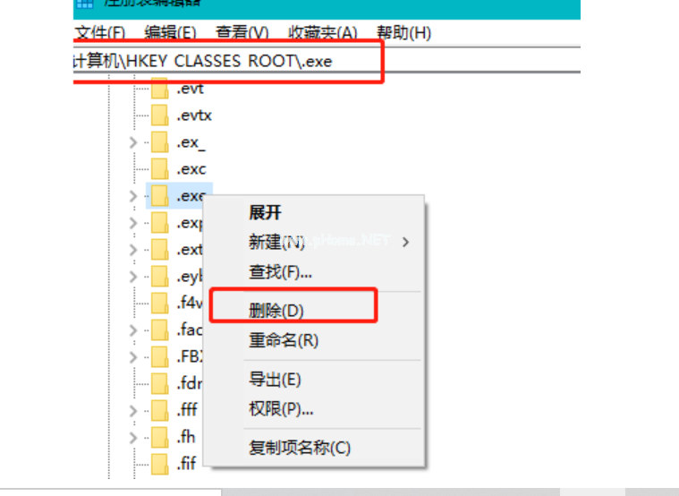 HKEY_CURRENT_USER\Software\Microsoft\Windows\Curentversion\Explorer\FileExts\EXE。
