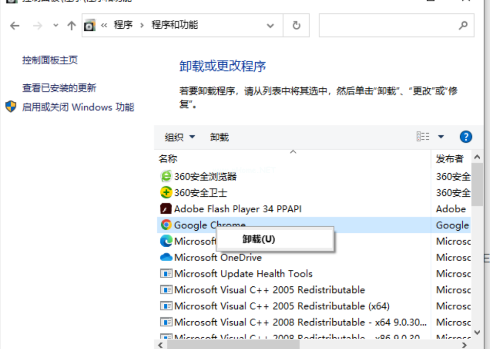 2、接著進(jìn)入控制面板-程序-卸載程序,將新安裝的打不開的軟件程序卸載。
