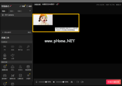 7、嵌入EV虛擬攝像頭,并錄制顯示器進行直播的效果。