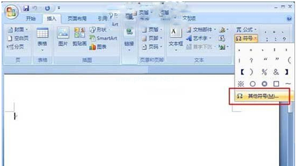 1、進(jìn)入【插入】選項(xiàng)卡之后,鼠標(biāo)點(diǎn)擊【符號(hào)】選項(xiàng)組中的【其他符號(hào)】;