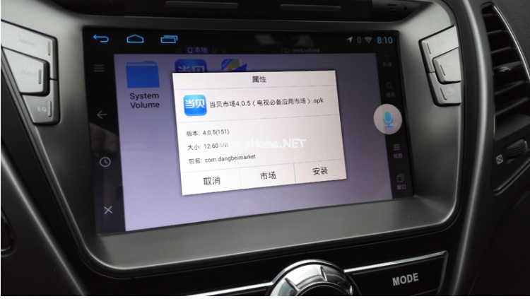 二、打開車載導航自帶的ES文件瀏覽器,找到U盤內下載好的當貝市場apk,點擊并確認安裝即可;