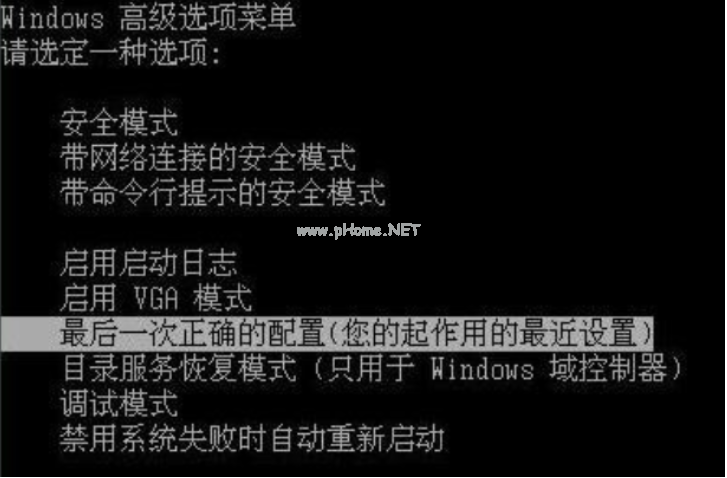1.沒(méi)有光盤(pán)和u盤(pán)如何修復(fù)系統(tǒng)呢?重啟電腦,在啟動(dòng)過(guò)程中不斷按F8鍵,輸入高級(jí)啟動(dòng)選項(xiàng),選擇使用“最新的正確配置”啟動(dòng)。
