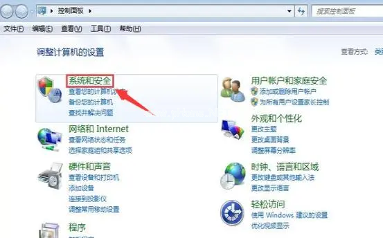 1、打開(kāi)電腦中的“控制面板”,點(diǎn)擊進(jìn)入系統(tǒng)和安全。