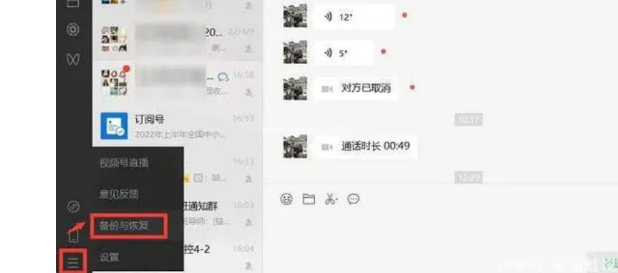 1、在電腦端跟往常一樣登錄微信,登錄成功后,點(diǎn)擊右下角的三條橫線,再點(diǎn)擊【備份與恢復(fù)】。