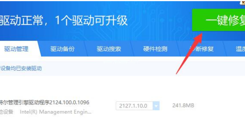 3、軟件會自動掃描,掃描完成后點擊“一鍵修復”即可安裝升級驅(qū)動。