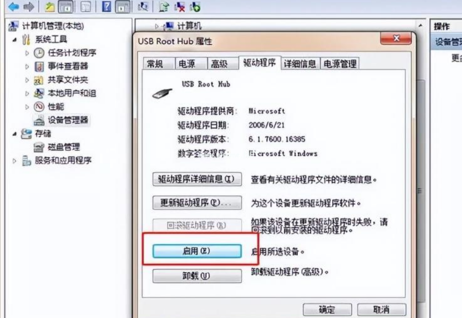 1、打開(kāi)【USB大容量存儲(chǔ)設(shè)備】,看看【驅(qū)動(dòng)程序】中的驅(qū)動(dòng)是否被禁用;