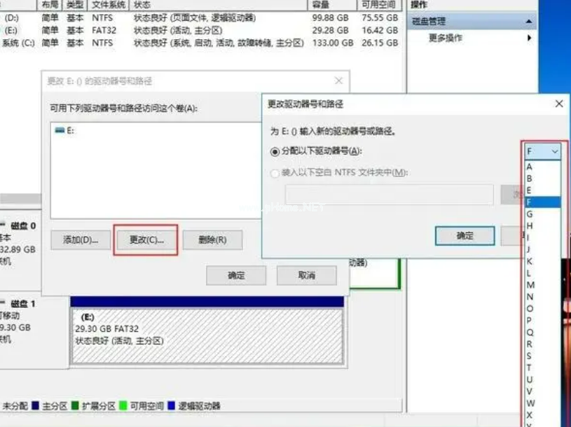 找到“可移動(dòng)磁盤(pán)”,點(diǎn)擊選擇“更改驅(qū)動(dòng)器號(hào)和路徑”;選擇一個(gè)未被占用的盤(pán)符,點(diǎn)擊確定。