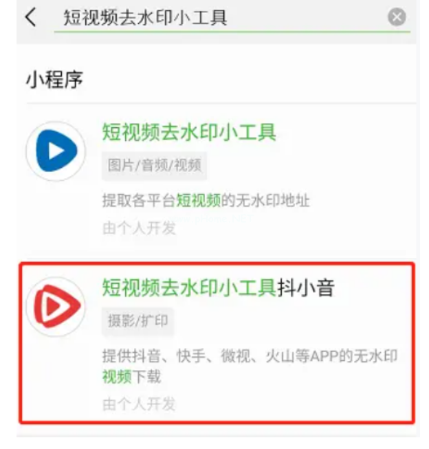 5. 點擊搜索,輸入“短視頻去水印小工具”;