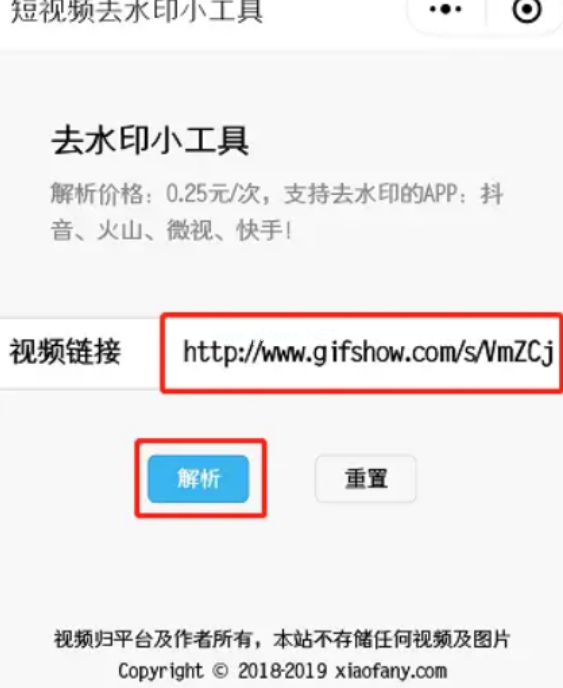 6. 進(jìn)入小程序,粘貼鏈接,點擊“解析”即可。