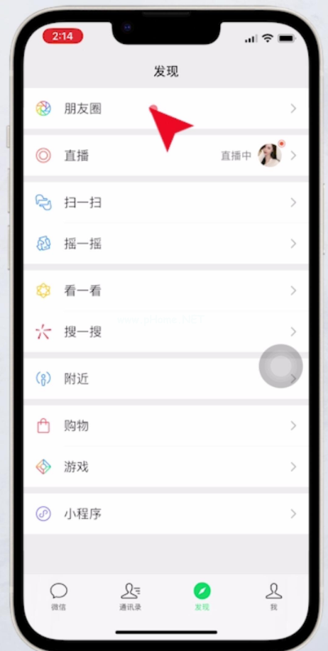 1、手機(jī)上打開微信,點(diǎn)擊發(fā)現(xiàn),選擇朋友圈。