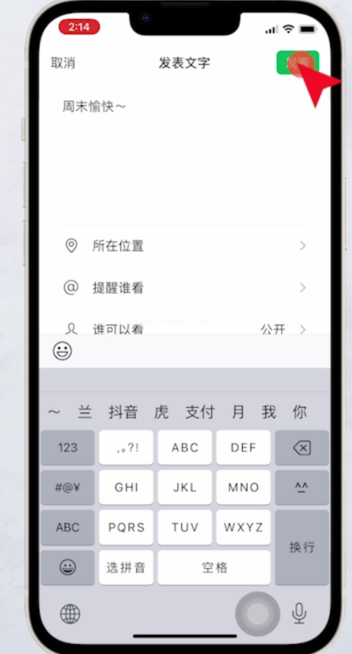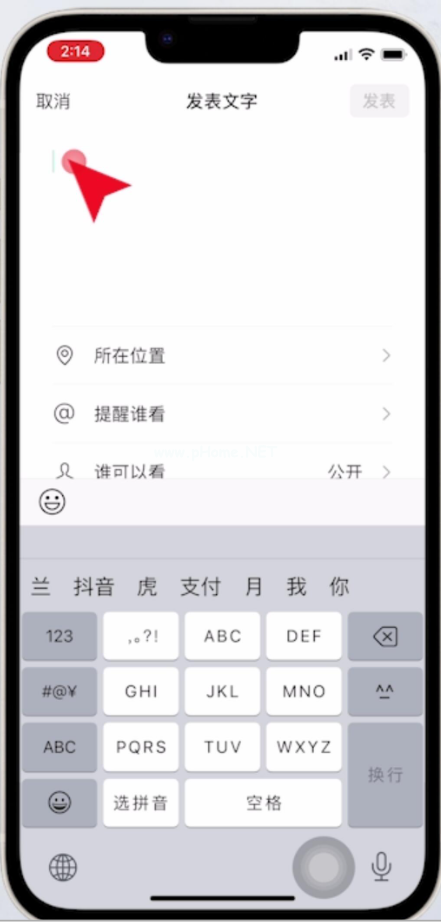 3、最后輸入文字內(nèi)容,點(diǎn)擊發(fā)表就可以了。