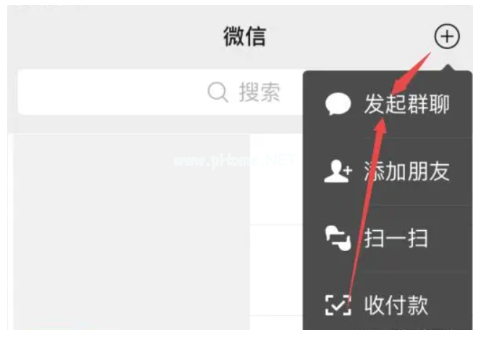 2、點擊出現(xiàn)選項中的“發(fā)起群聊”。