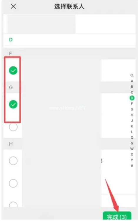 3、選擇需要一起加入群聊的好友,點擊右下角“完成”,就可以創(chuàng)建一個群聊了。