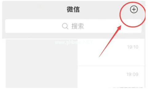 1、微信點擊右上角加號。