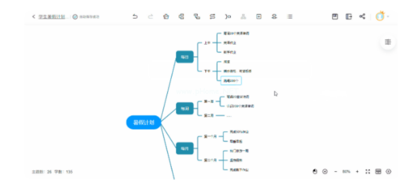 步驟2、進入思維導圖編輯界面,可以根據(jù)模板內(nèi)容雙擊主題修改自己需要的部分,如將“語文作業(yè)”改成“跳繩200個”,直到內(nèi)容完善,思維導圖就做好了。