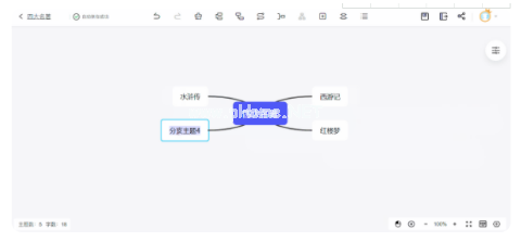 步驟2、進入思維導圖編輯界面,雙擊編輯中心主題,如“四大名著”,再圍繞中心主題劃分下一級的主題,讓整個導圖的內(nèi)容脈絡清晰,如四大名著分為紅樓夢、西游記、水滸傳和三國演義。