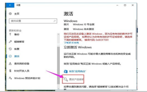 3、找到“激活”點擊,然后選擇右下角的“更改產品密鑰”。