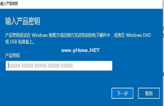 4、根據系統(tǒng)版本,選擇輸入上面的密鑰,再點擊"下一步",等待激活成功即可。