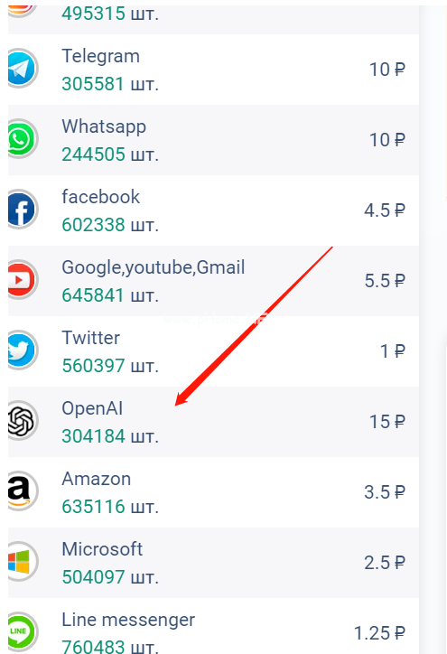 充值成功后,左邊側(cè)邊欄選擇openai,隨便選一個看起來便宜點的國家手機號