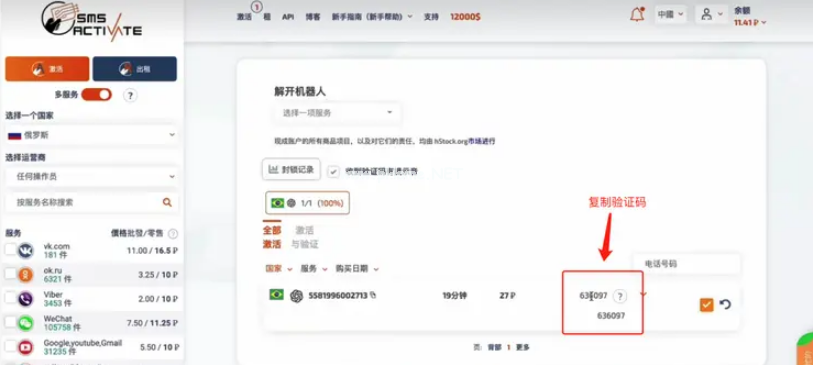 3、能接受國外手機驗證碼的平臺,推薦https://sms-activate。org/cn/