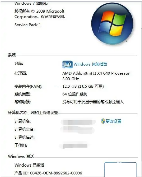 5、電腦重新啟動后可以右鍵點(diǎn)擊我的電腦點(diǎn)擊屬性,之后會打開系統(tǒng)面板,這時(shí)候windows激活模塊已經(jīng)顯示激活。