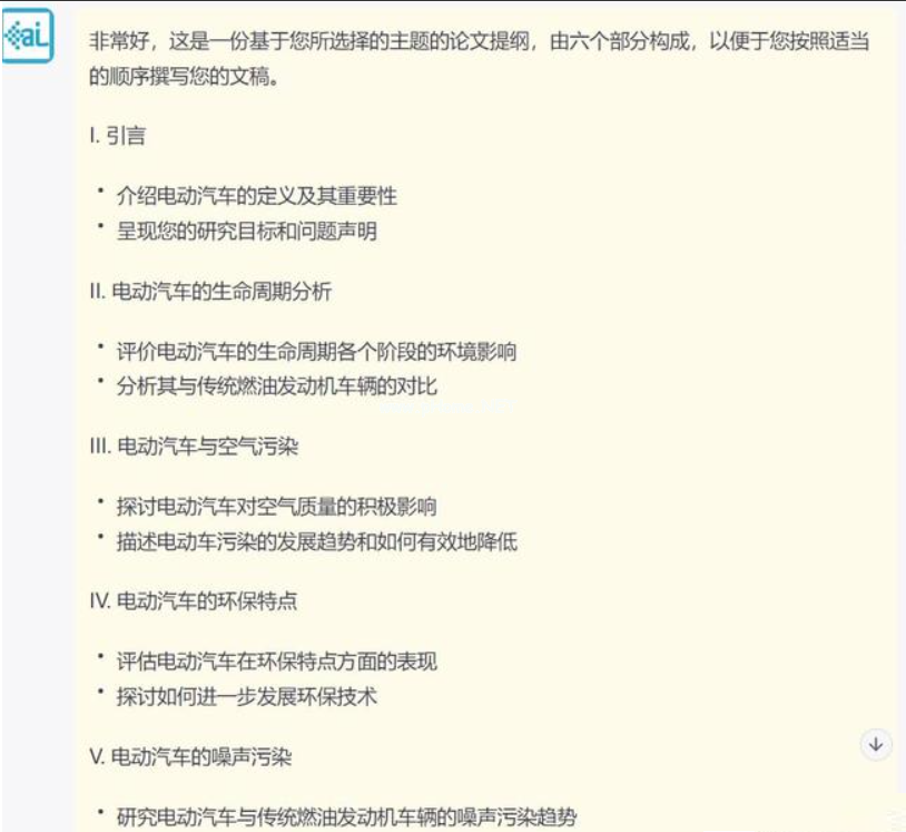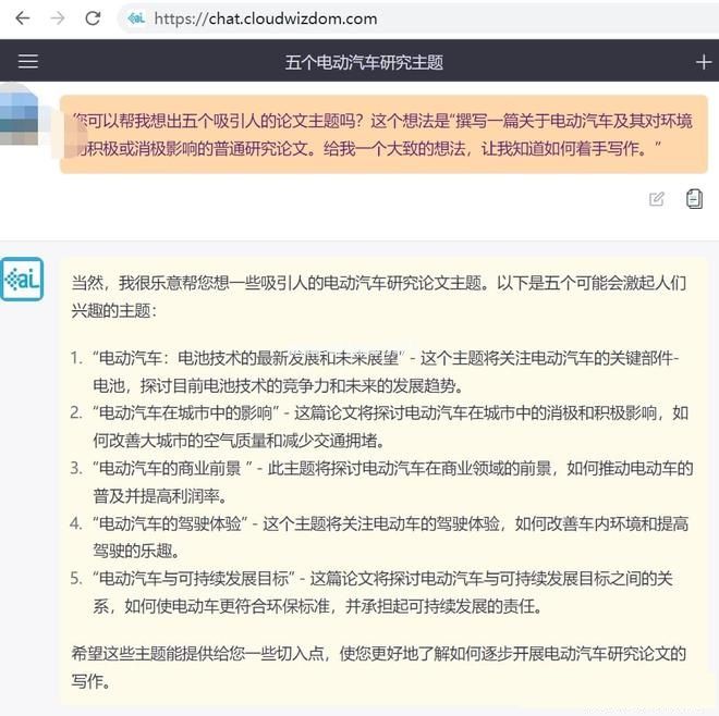 “您可以幫我想出五個(gè)吸引人的論文主題嗎?這個(gè)想法是“撰寫一篇關(guān)于電動(dòng)汽車及其對環(huán)境的積極或消極影響的普通研究論文。給我一個(gè)大致的想法,讓我知道如何著手寫作?!?/p>