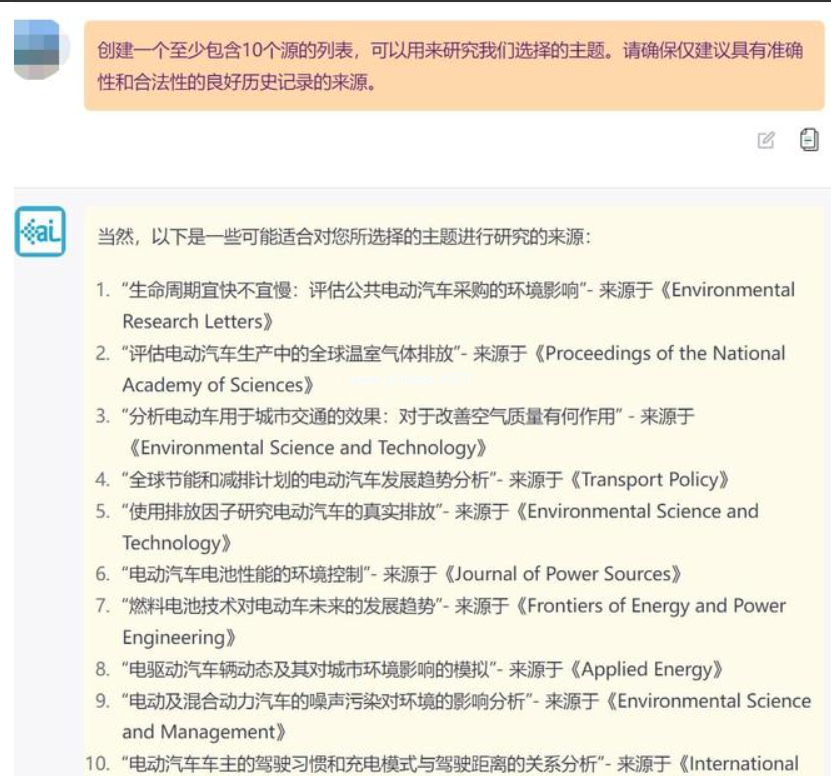 “創(chuàng)建一個(gè)至少包含10個(gè)源的列表,可以用來研究我們選擇的主題。請確保僅建議具有準(zhǔn)確性和合法性的良好歷史記錄的來源?!?/p>