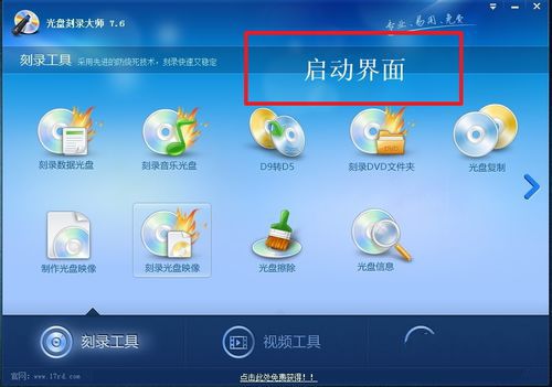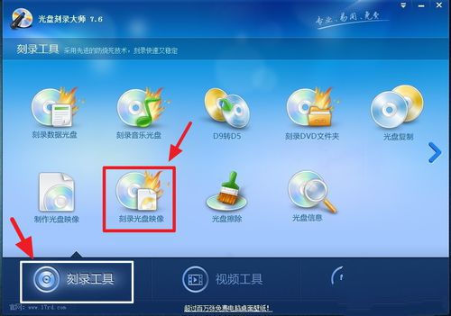 在刻錄大師的界面中,下方有三個(gè)功能選項(xiàng)“刻錄工具”、“視頻工具”、“音頻工具”。在這次分享中需要用到的是“刻錄工具”-〉“刻錄光盤映像”