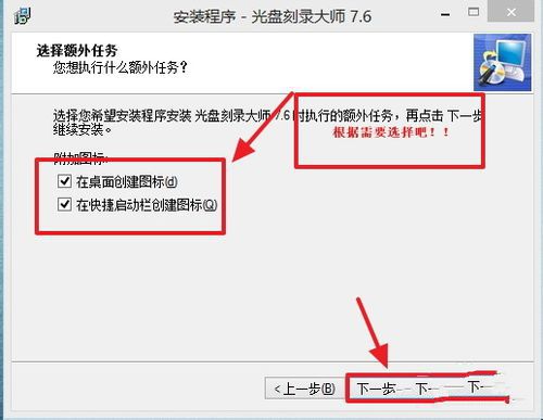 6接著就是一系列的“下一步”,直到安裝完成。稍微需要注意的是關(guān)于創(chuàng)建快捷鍵的選擇。至此,已經(jīng)安裝完成。