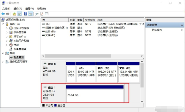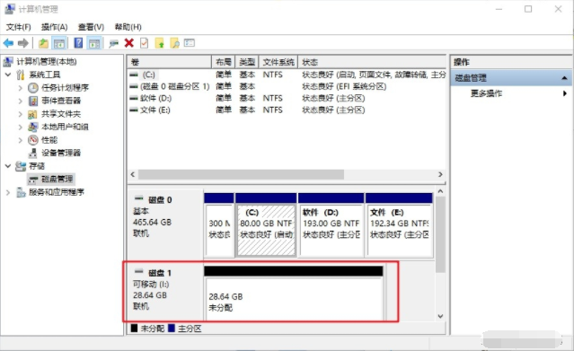 4、點(diǎn)擊“磁盤管理”打開,確認(rèn)好u盤的盤號。(如圖所示是1盤)