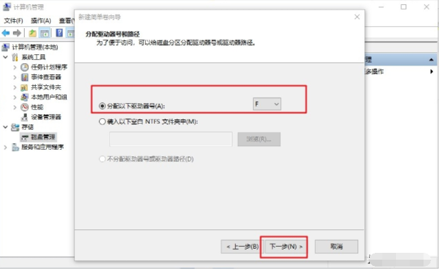 10、接著來到設(shè)置驅(qū)動器號界面,自行給u盤劃分好驅(qū)動器盤符然后點(diǎn)擊“下一步”(注意是系統(tǒng)磁盤沒用過的盤符),繼續(xù)設(shè)置格式化操作,點(diǎn)擊“下一步”。