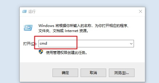 1、我們插入u盤進(jìn)電腦,在電腦上按下win+r快捷鍵打開運(yùn)行菜單,輸入“cmd”回車確定打開命令提示符頁面。