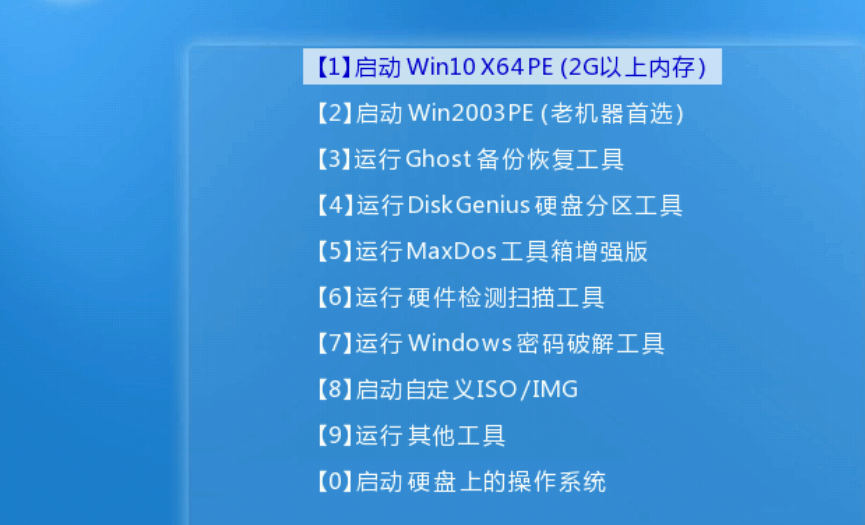 9.進(jìn)入pe系統(tǒng)主頁面后,選擇“1”進(jìn)入系統(tǒng)中按照提示完成一系列安裝步驟即可完成安裝。